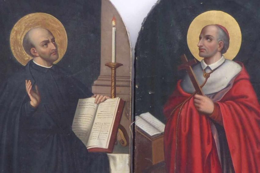 Full-length figures titled below ''St. Jgnatius Loyola'' and ''St. Karl Borromaeus''.