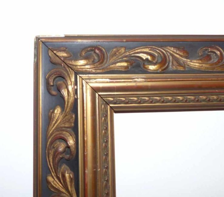 Ebonisierte Kehle mit Blattfries zwischen vergoldeten Profilen. Nadelholz. Lichtmaß 148 x